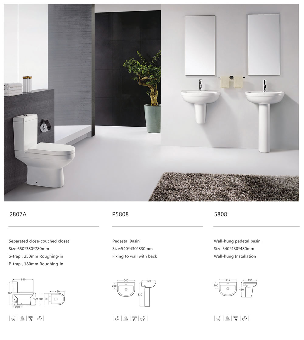 Wall-hung pedetal basin Size:540*430*480mm
